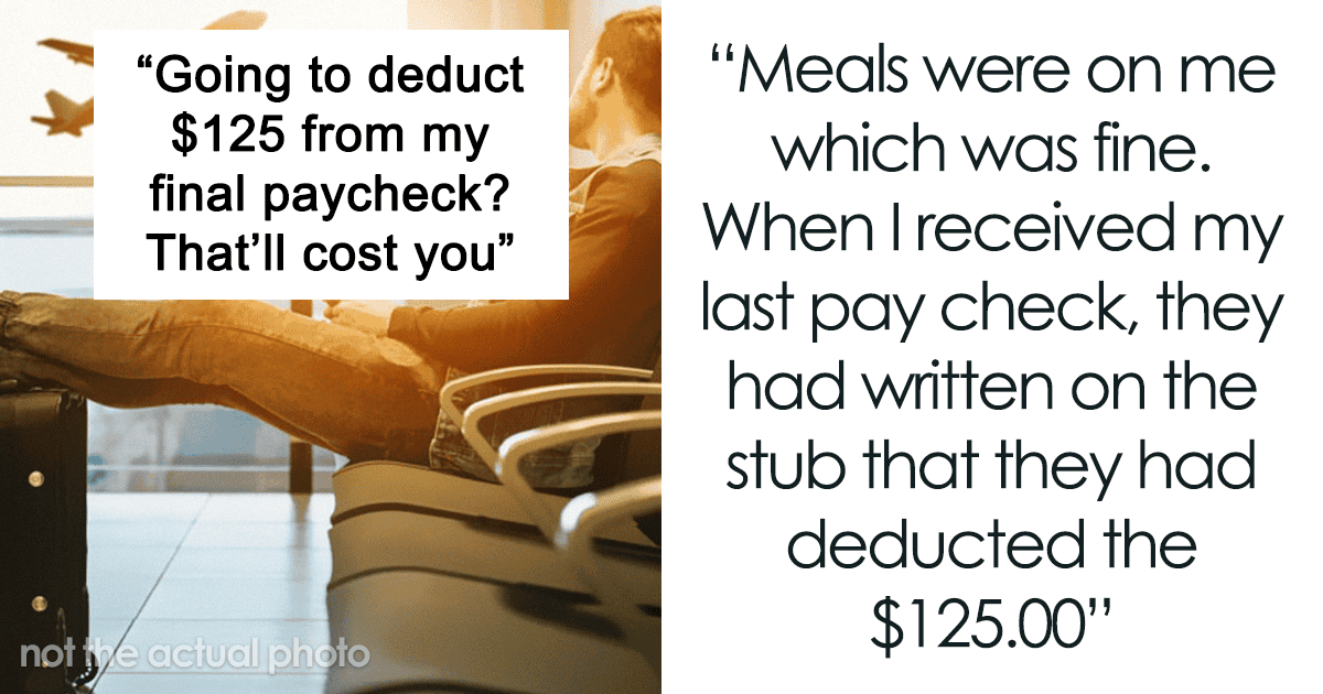 The OP decided not to bear with the managers anymore. And that’s when they showed their true colors—the stingy boss deducted money for what was a work-related trip. It wasn’t a large amount, but in a situation as such, it’s not the sum that matters. “What upset me the most was the absolute pettiness of the agency owners,” she said. “Familiarization trips were common and to attempt to ‘punish’ for quitting by deducting the $125 from my paycheck was just so small but also so typical of these people.”