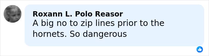 At some point while zip-lining, the tourists and their guide struggled to descend from a tree and were attacked by a swarm of Asian giant hornets, which are the largest species of hornet in the world.