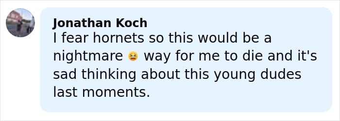 “The hornets were horrifying,” she told local news media in 2013. “They hit right at my head and covered my legs. All of a sudden, I was stung, and I couldn’t move.”
