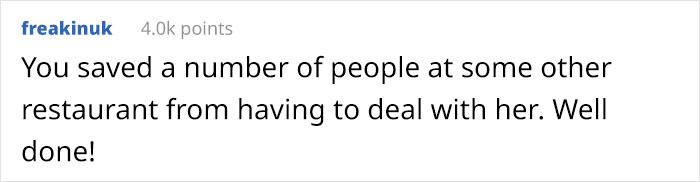 The former hostess was sick of the work environment and after a year, decided to leave and was lucky enough to find a new job. She put in her two weeks’ notice directly to the general manager and went on her merry way with no hard feelings.