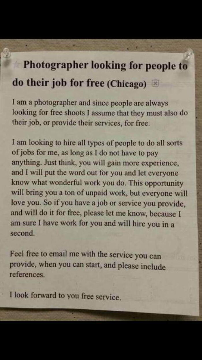 Those people and companies that suggest to others that they should work for exposure instead of for money end up showing everyone how they view others and what they think they’re worth.
