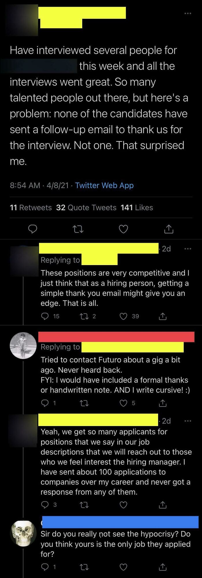 #68 Manager Is Disappointed None Of The Talented Job Interviewees Have Sent A Thank You Email For The Interview