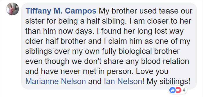 How would you feel if you discovered that your sibling was in fact a half-sibling? To many people it wouldn’t matter that much, it’s the relationship that counts. But to a child, being told that some part of your sibling has been suddenly taken away from you can be a devastating blow.