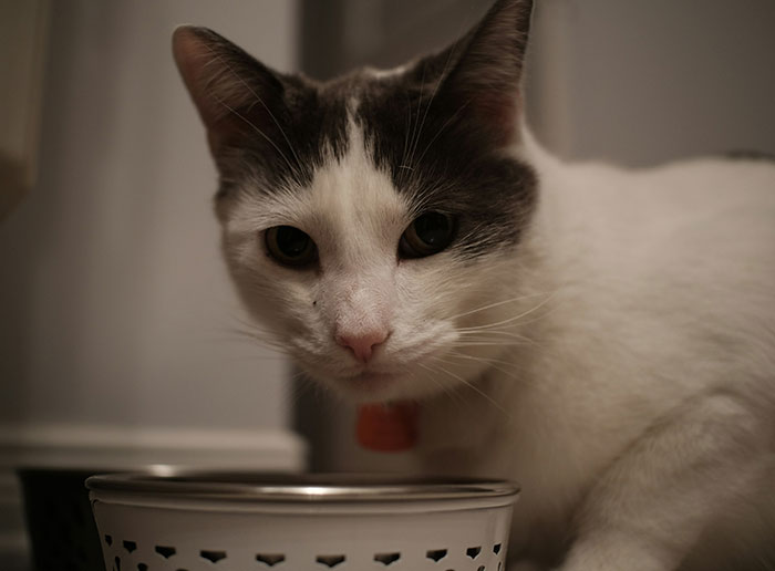 Cats prefer for their food to be far from their water, because in the wild, carcasses in still water may signify infection.