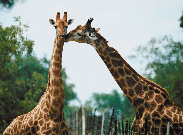 In Africa and other places where giraffes live a male will beat a female with his head until she [urinates] and then the male will drink the [urine]to see if the female is able to have babies.