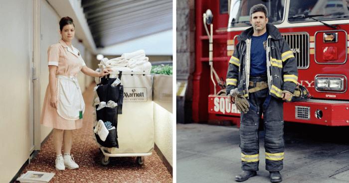 Richard Renaldi’s portraiture photographic project “Shoppers and Workers” has captured vibrant individuals around New York City circa the 2000s. The stunning fashion of shoppers and the neat uniforms of workers portray people’s social status of different ages and ethnicities of that time.