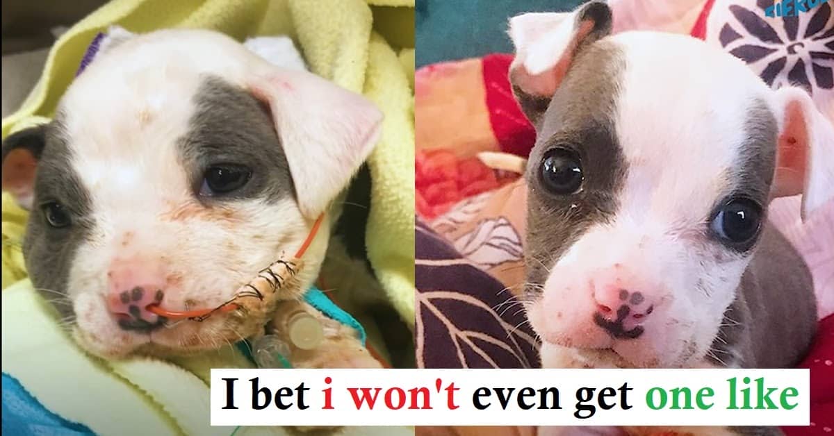 The Pittie puppy weighted less than 2 pounds when found abandoned at a construction sit, and wasn’t doing well at all.