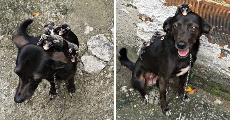 Pretinha is a lovely dog who adopted a group of helpless baby opossums and raised them like her own babies. Due to a misfortunate event, the poor babies lost their mom and became orphaned. A dog attacked their mom and left them alone with some extremely slim chances of survival.
