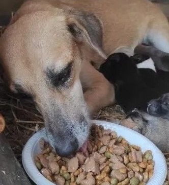 Similar to Mary giving birth to Jesus, this street dog gave birth to seven pups on a barnacle packed with straw.