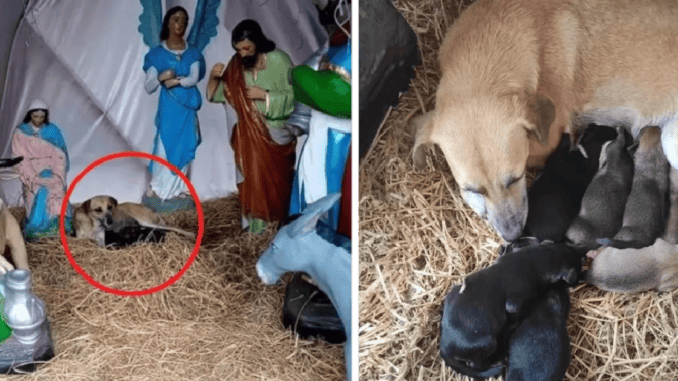 Eric concentrated his gaze and saw that the dog had given birth to seven puppies. It appears that the dog determined that the Christmas birth was the only location that was secure and welcoming for her to give birth.