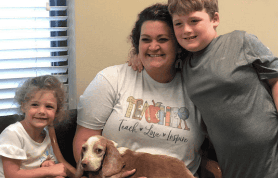 Rachel didn’t think twice about picking up Vinny from the rescue. She and her family wanted to make sure he spent his final days in comfort and safety. Rachel’s two children fell in love with the aging dog right away, affectionately dubbing him their “puppy” and squabbling over whose lap he would sit in on the ride home.