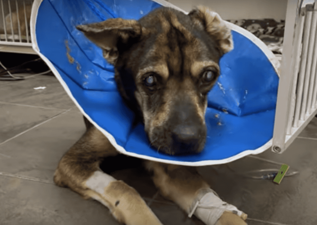 When this senior dog’s owner decided she had not been worth his time, he left her in a church car park in the rainfall, She was so confused! She was blind and ill.