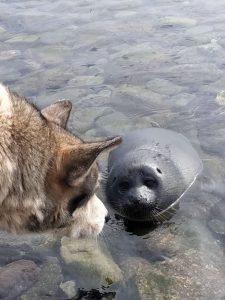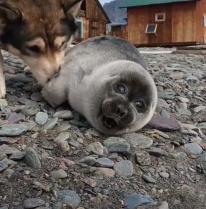 People who live and work as meteorologists on Lake Baikal found a small seal on the shore, which was already exhausted and practically did not move. The baby was taken to the station where they began to nurse. The dog, named Nika, also came to the rescue. People think that it took the baby for a puppy, it began to lick it and take care of it. A lot of affection and love gave its results and the seal began to recover.