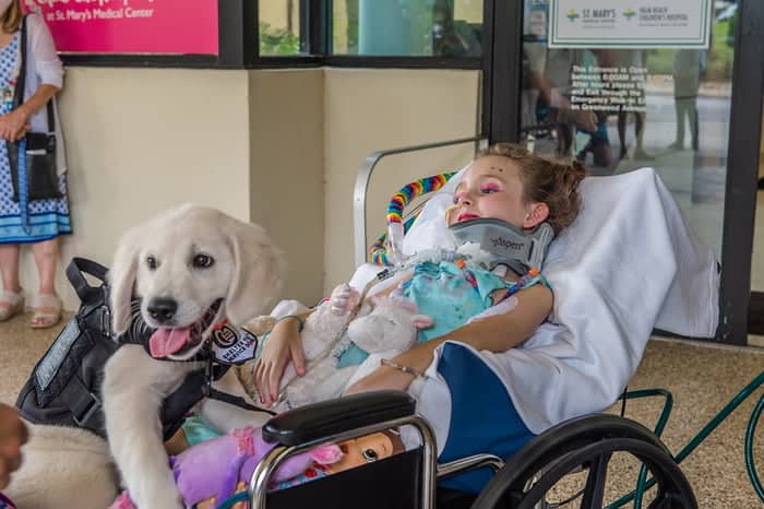 Not only is the kid a great candidate for a service animal, but she also enjoys dogs. She’s always wanted a dog and dreams of becoming a veterinarian when she grows up.