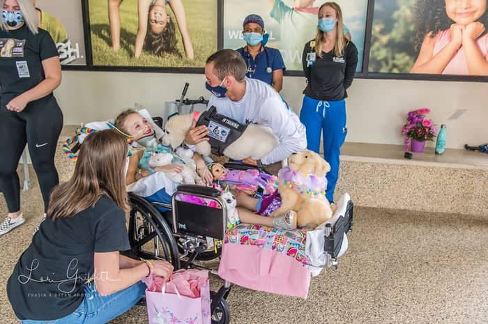 While Juliet still has to go through some training, she was allowed to meet her future owner for the first time and pay a visit to Memphis Rose in the hospital.
