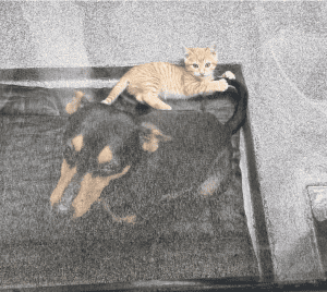 Cats and dogs are usually housed in separate quarters at Greenside Animal Hospital, but the isolation ward is an exception. Anne and Ginger’s boxes were on opposite sides of the room. The personnel believed there was no way they could have any interaction. Ginger, on the other hand, has different ideas.