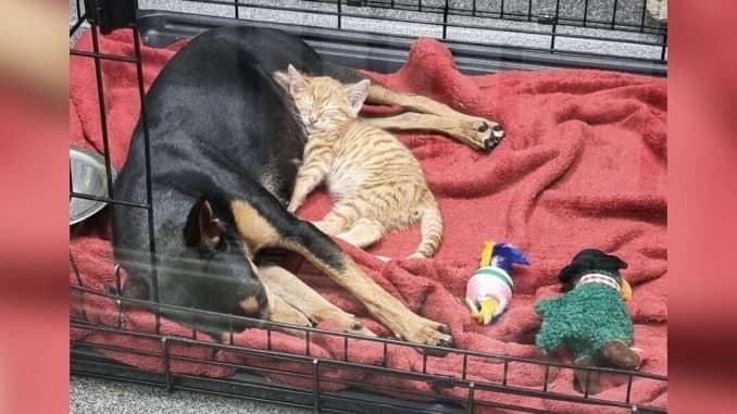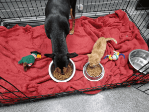 Now, Anne and Ginger are sharing a crate full time, and they couldn’t be happier about it. Anne was so weak when she first arrived at the hospital, but having Ginger by her side seems to be helping her recovery and giving her strength. He gives her something to focus on and care for, and she gives him a sense of calm and safety that he had been missing before.