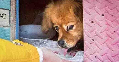 They built a doghouse in the complex for Da Huang to sleep in while bringing food to feed the animal every day.