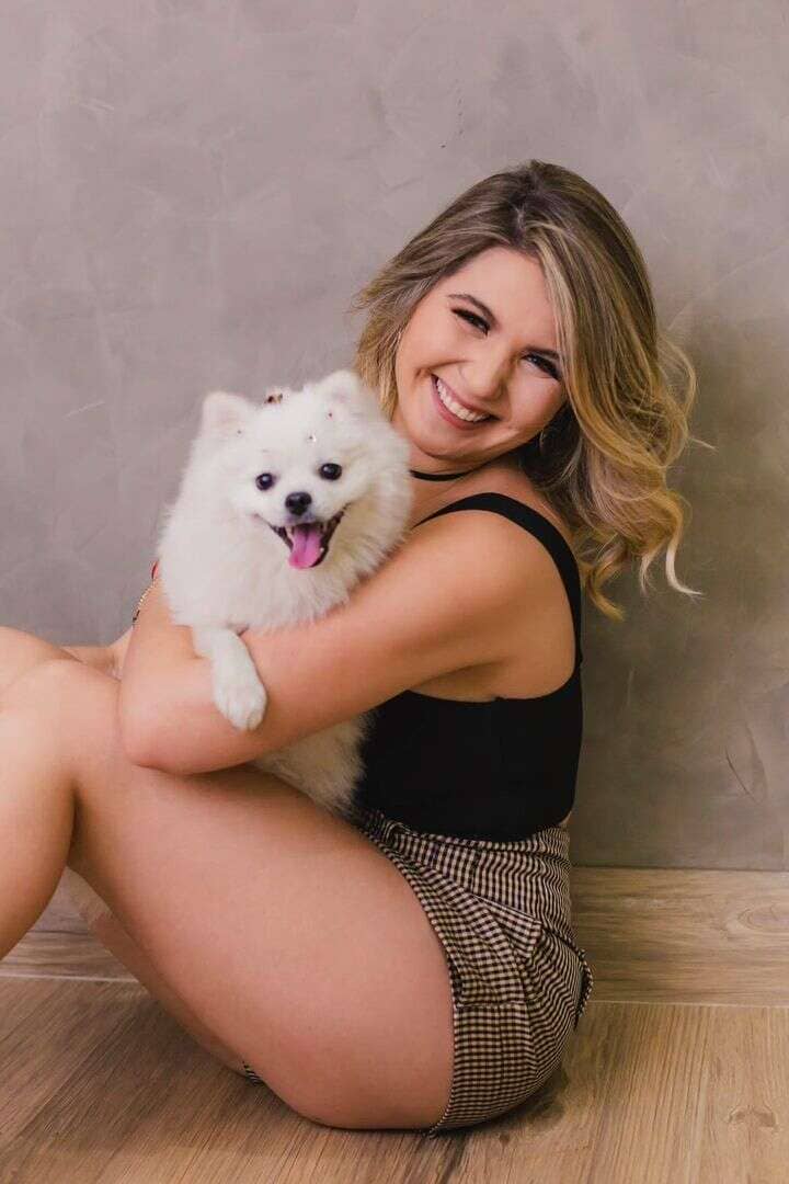 The other day, Kreibich decided to bring a freshly washed and groomed Luna along with her to visit the place where her fiancé works. It had rained earlier, but Kreibich wasn’t too concerned about her dog getting dirty — she keeps herself clean, after all.