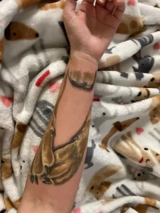 She chose a design that mirrored Sebastian’s favorite pose; Just as Sebastian would embrace Halcin in life, he now does the same in spirit — memorialized in that artistic tribute.