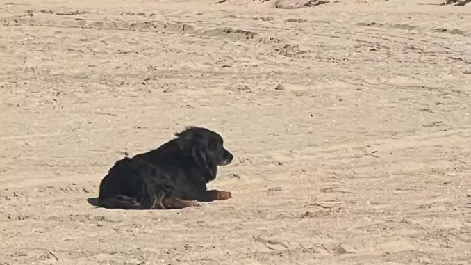 When Hall got to the beach, she dragged a large trap onto the sand, where she could tell Simba had been sleeping. The pup wasn’t there as she set the trap up, but she hoped the treats she placed inside would lure him back.