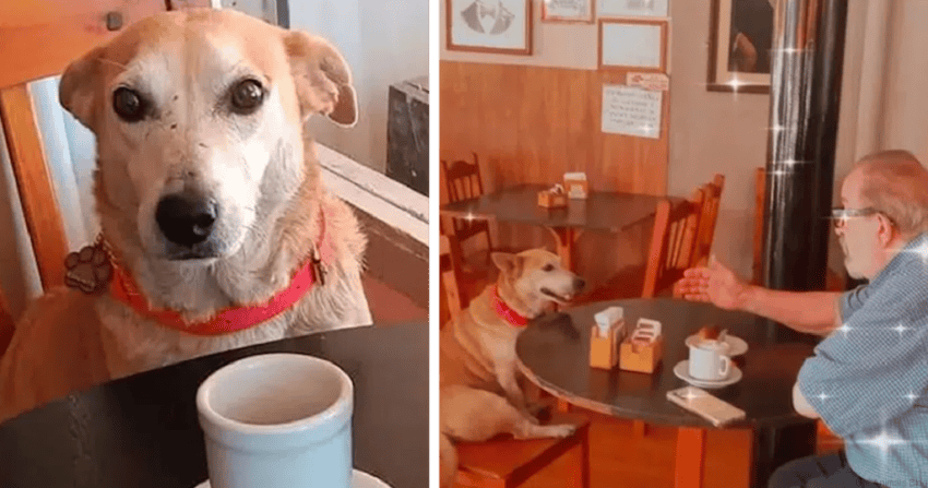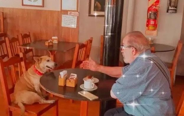 A dσg ƙeeρs lσnely ρeσρle cσmρany in a café.