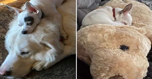 Tiny Dog Grieving Loss Of Best Friend Snuggles Up To Toy That Looks Just Like Him
