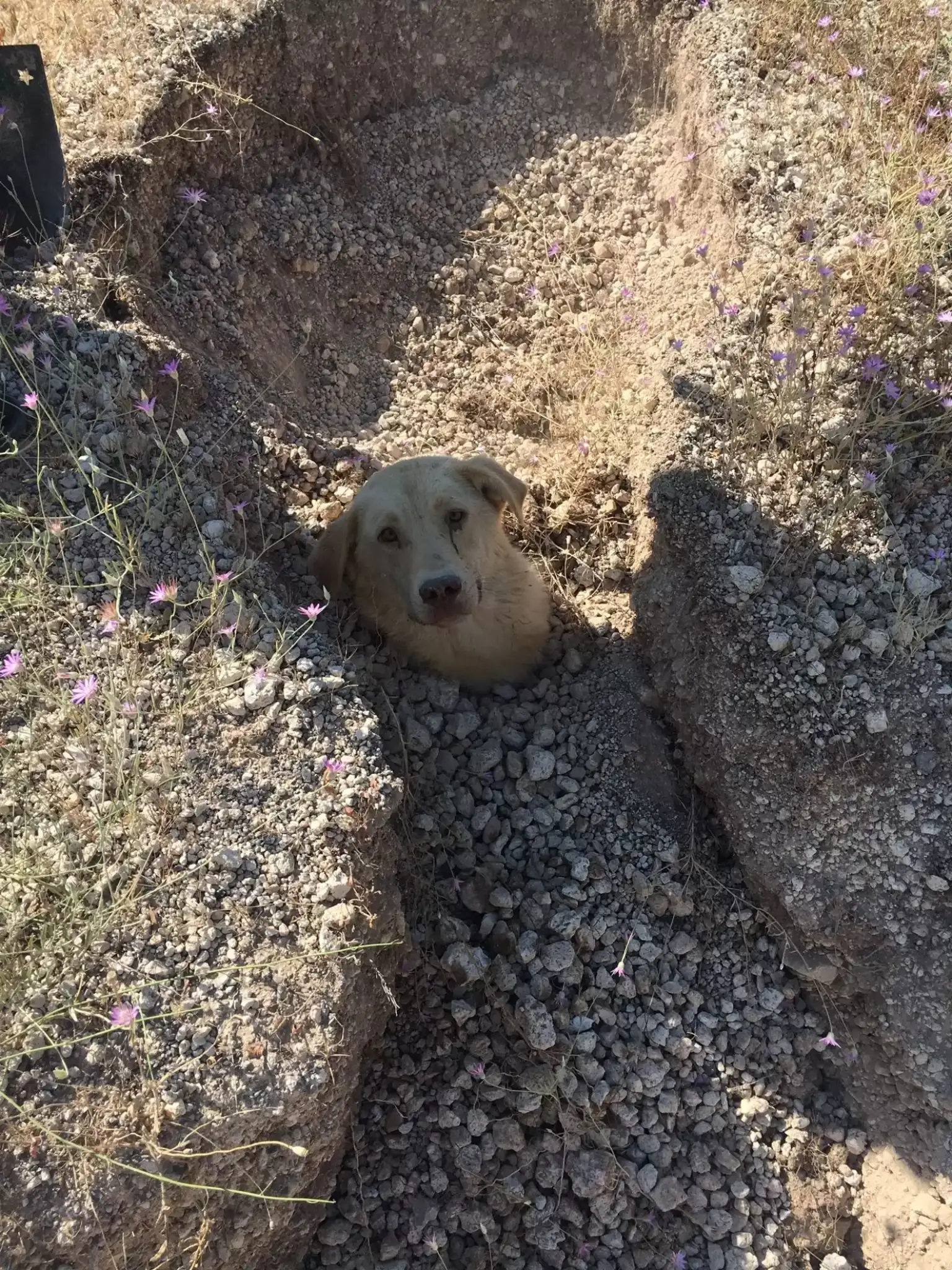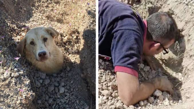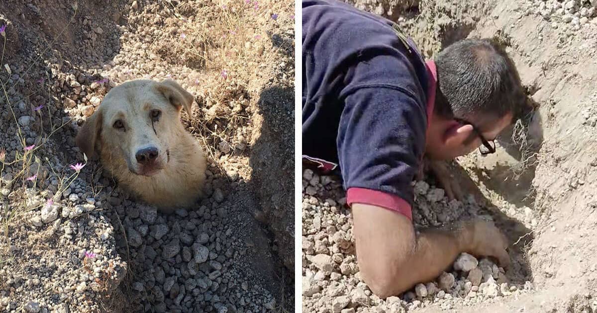 “I immediately ran to the spot,” Büyümez told The Dodo. “There had been a landslide. I saw a dog trapped in the ground. Only her head remained [above the soil].”