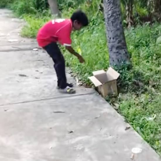 This story from in Mexico. with a kind boy. A kind-hearted and generous boy was walking along the road. Suddenly, he heard noises from the box. The box was moving.  He went after the noise and what he saw made him feel sorry for the puppies. There were three puppies left in the box.