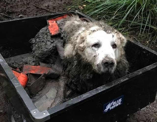 A rescue dog saved the life of the missing family dog for already 40 hours stuck in the thick mud A canine was lost and the family was looking for the missing canine. The canine’s name is Puppy. The canine was lost for nearly 40 hours.