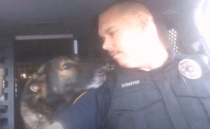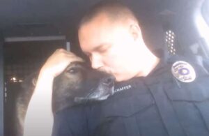 With a whimper and a kiss, the K9 nuzzled in toward his partner one last time on the job.