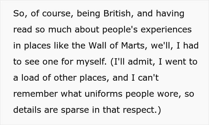 So, the Original Poster (OP), a Briton, once visited the United States as part of their business trip, and by the will of fate ended up in… well, if the author with inimitable British humor says that this is ‘the Wall of Marts’ store, then we understand exactly what is meant, don’t we? So, it was in the expanses of this store that this wonderful situation occurred.