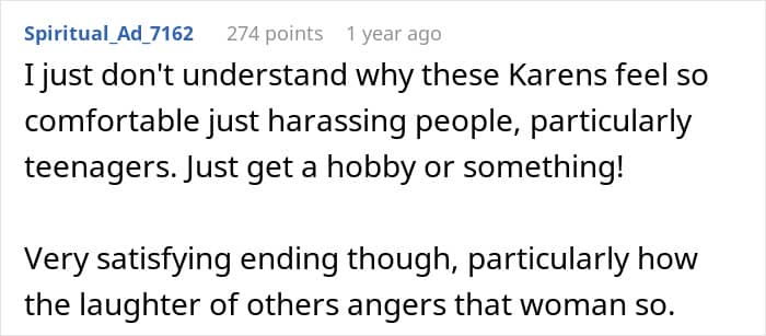 We must say, the vast majority of commenters to the original post turned out to be completely on the girl’s side, wondering what this ‘Karen’ really wanted? To fire everyone in the store and to get it closed? To punish the ‘employee’ somehow? Who knows? However, according to folks in the comments, when it comes to this category of clients, you never know what really caused their outburst of anger, and what they really wanted. “I just don’t understand why these Karens feel so comfortable just harassing people, particularly teenagers. Just get a hobby or something!” one of the commenters ponders.