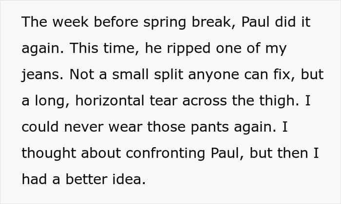 Unfortunately, the original poster (OP) wasn’t the right person to cross. Especially after permanently ruining a pair of his jeans.