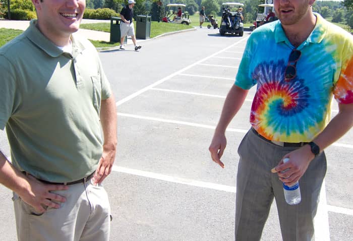So what does OP do? He stuffs his suitcase with a bunch of dress shirts that probably cost over 100 bucks, according to Hugo Boss and Ralph Lauren’s prices, takes them home with him, gets a load of his friends together and tie-dyes the white ones.