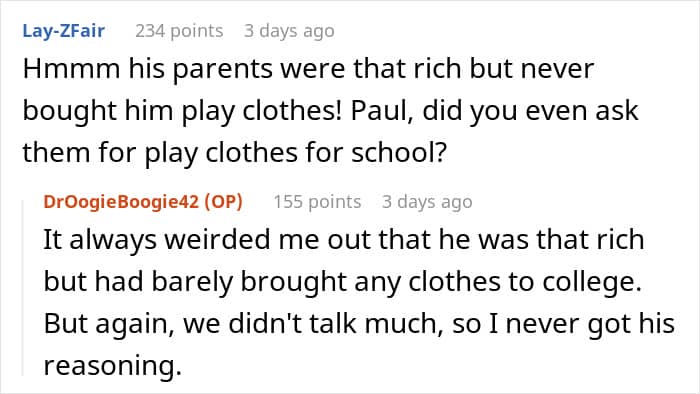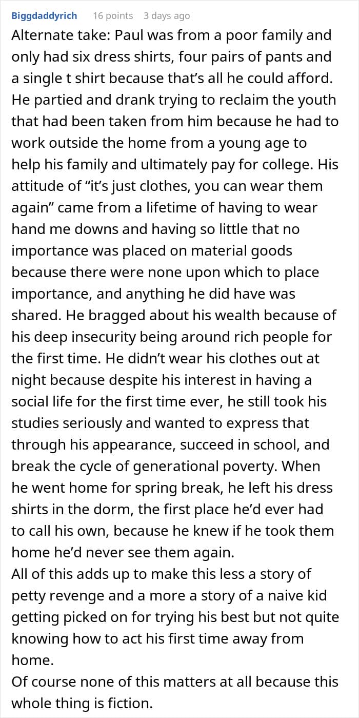 A entitled guy decided to borrow his uni roommate’s clothes for partying because his clothes were too good to ruin