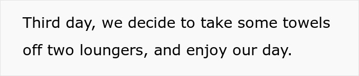 People like to spend their vacations in a variety of ways, but if the destination is by the sea or a resort equipped with a pool, it’s a pretty safe bet that spending time in the water or by the water is in the cards. Unfortunately, this means sharing this space with a lot of other humans who all have a similar plan of action. The result, as OP shared, is a sort of cold war, involving towels, lounge chairs, and the weaponization of the unwritten rule of “dibs.” Now, most of us would honor the idea of dibs or first-come, first-serve, but as the women behind the post identified, there are people who use this honor system against others. Occupying a seat you aren’t using for hours is counterproductive and downright annoying.