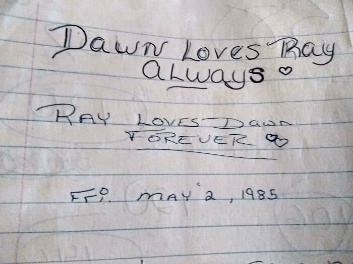 #16 My Mom Was Cleaning Up And Found A Piece Of Paper Her And My Dad Wrote On From Before They Got Married In ’86. They Were Together Until 2011 When My Dad Passed