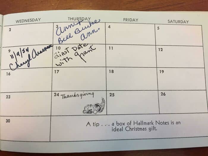 #37 Found My Grandmothers Calendar Which Contains The Date Of Her First Date With My Grandfather. Thursday The 10th 1955. They Would Get Married 1 Year Later