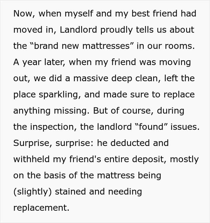 Ah, renting—where the only thing more uncertain than your lease terms is whether or not your awful landlord will enforce them. Unless you end up with a scrooge, like Reddit user GalwayGuy24 did when he was studying abroad. As time went by, it became obvious to him that the man was determined to squeeze every last penny out of his tenants. Frustrated by the constant manipulation, the Redditor knew that when he needed to move out, he could wave goodbye to his deposit—so he decided to teach the cheapskate a lesson.