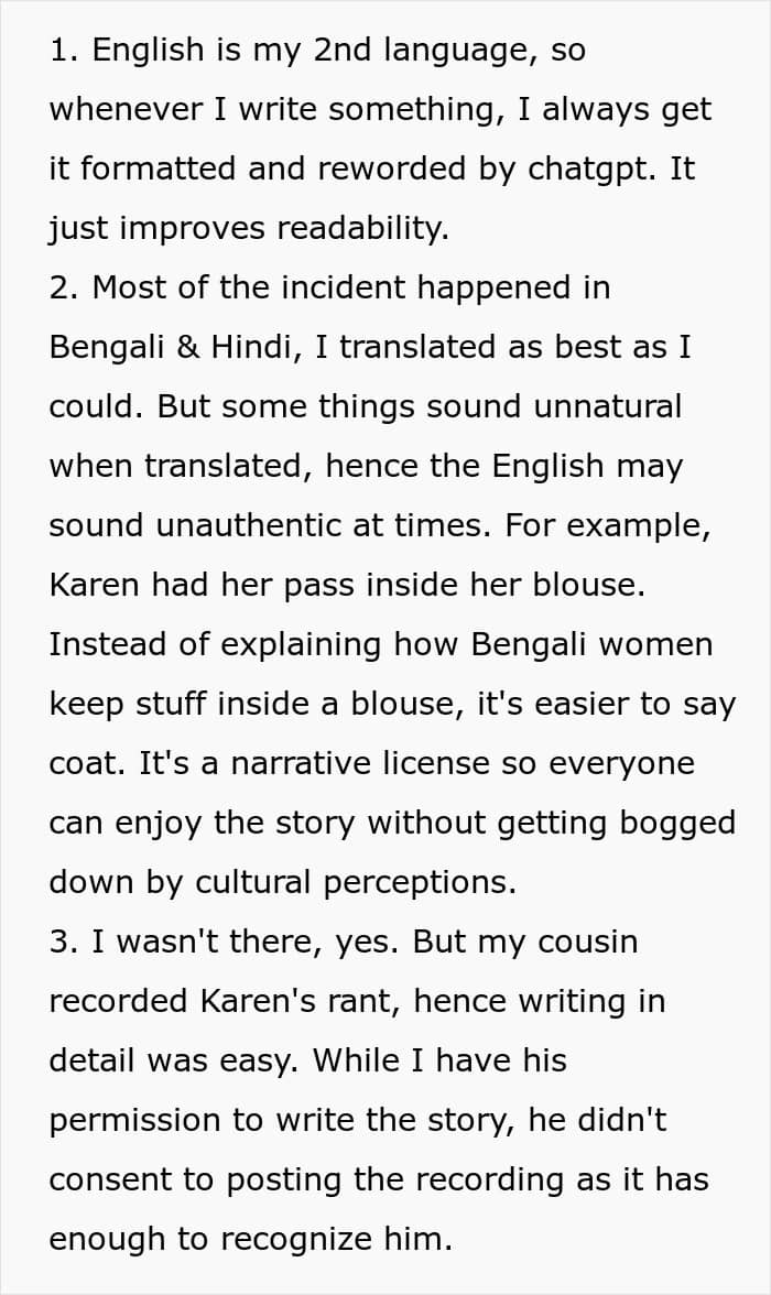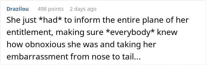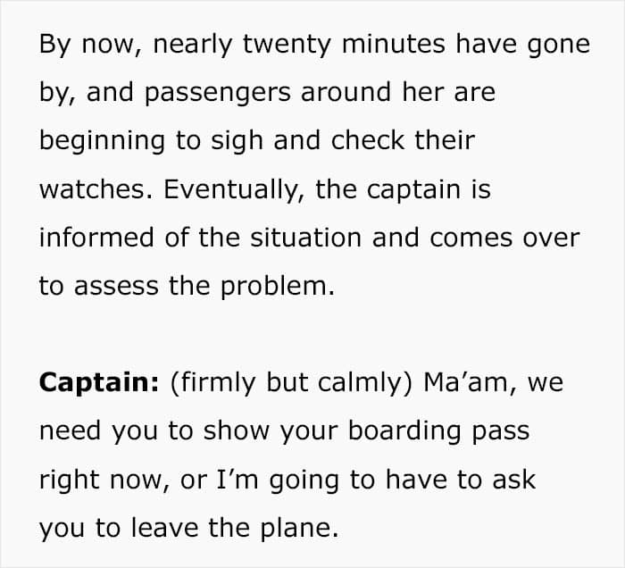 Since the Karen delayed the flight for almost half an hour, other passengers weren’t too happy with her antics either. “Once the Karen finally left, everyone around him was visibly relieved, and a few passengers even shared looks or whispered comments about how dramatic she’d been,” the Redditor relays their cousin’s experience to us.