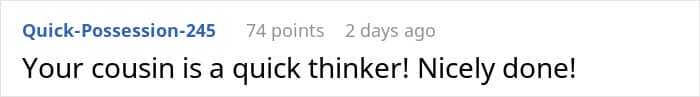 “My cousin’s story is a reminder that respecting other people’s space and possessions goes a long way—and that sometimes, a little creative thinking can defuse a situation better than confrontation,” they believe. “Also, in crowded spaces, it’s easy to feel anonymous and forget how your actions impact those around you, so, it’s a good reminder to stay considerate!”