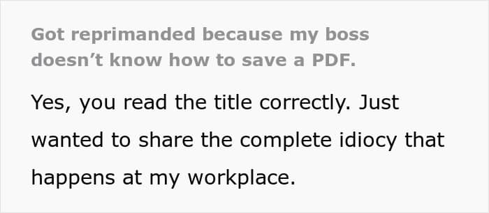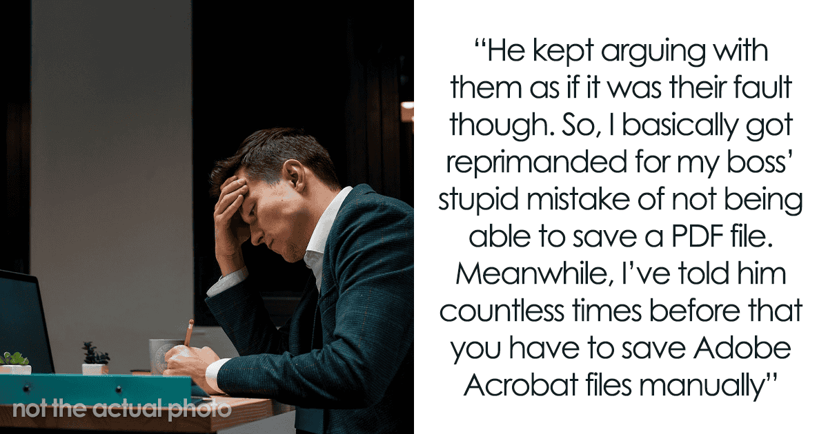 OP begins her story by telling the community that she just wants to share the complete idiocy that goes down at her place of work. She explains that her boss, who’s the owner of the company, frequently works late. One night he was working on an important Adobe Acrobat file when it crashed. When he reopened the file, none of his work had been saved.