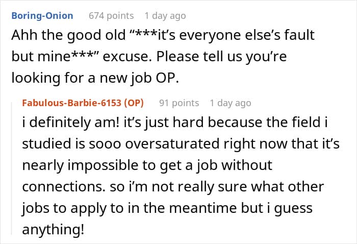 In the comments, readers agreed that the boss was toxic and that the woman should start looking for a new job