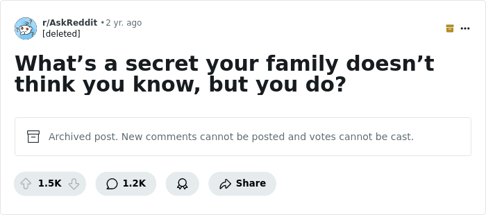 These people are using Reddit as a platform to unburden themselves while hiding behind the anonymity of a username. They responded to this loaded question: “What’s a secret your family doesn’t think you know, but you do?”