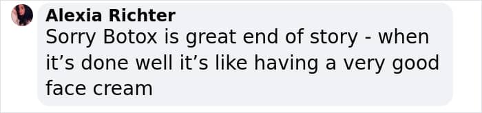 “Simon Cowell, Amanda Holden, and Patsy Kensit regularly had botox I believe, and although they looked different with it I wouldn’t say they look youthful,” wrote another.