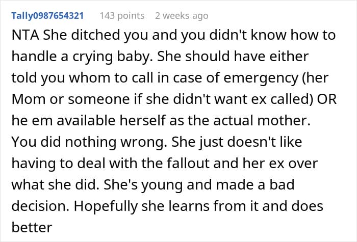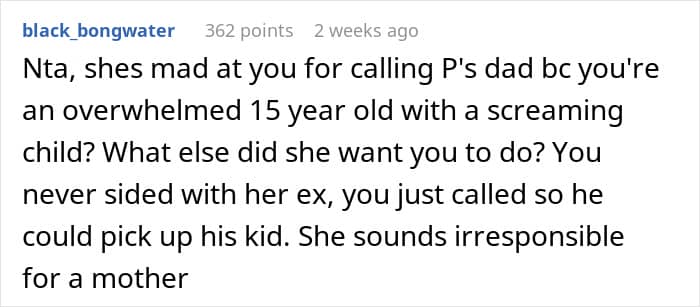 She didn’t even leave her any reasonable alternatives to contact. She didn’t even leave her location on, so the fifteen year old was basically forced to find some other help. After all, a crying baby is stressful enough when you are its parent, let alone a teenage babysitter. It’s still a lot of responsibility.