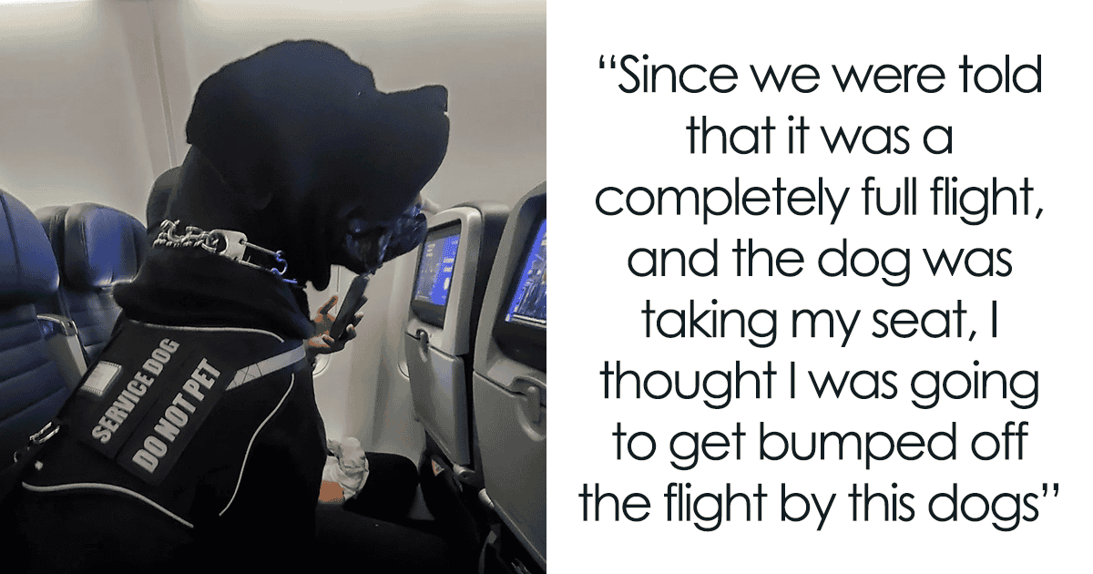 But, as they approached their seats, they realized that the spot had already been claimed, not by a fellow passenger, but by a colossal service dog. And no, it was not curled up neatly on the floor. This furry giant fully occupied the OP’s seat, with its tail probably wagging at the absurdity of it all.