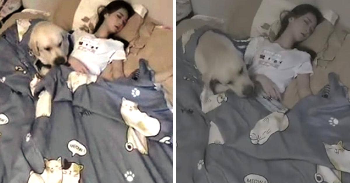 Labrador Retriever Filmed While Covering His Sleeping Mom To Keep Her Warm