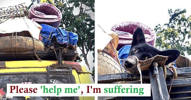 Driven to its death: Dog is tied to the roof of a car and taken away to be EATEN from Indian meat market… as passer-tries to save its life